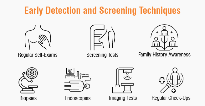 Cancer diagnosis involves a number of techniques, which include physical examination, imaging tests, biopsy, blood tests, and endoscopy. A physical examination checks for abnormalities; imaging tests such as X-rays, CT scans, MRIs, and ultrasounds are used to visualize tumors and internal organs. A biopsy examines cells under a microscope, while blood tests help detect specific types of cancer or identify associated markers. Endoscopy examines the inner organs using a flexible tube with a camera.