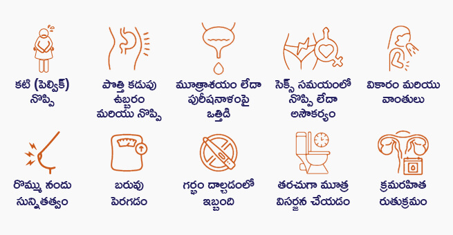 - ఎండోమెట్రియోమాస్: ఎండోమెట్రియోసిస్ ఉన్న మహిళల్లో ఈ తిత్తులు అభివృద్ధి చెందుతాయి. గర్భాశయం యొక్క లైనింగ్ను పోలి ఉండే కణాలు గర్భాశయం వెలుపల పెరిగినప్పుడు ఎండోమెట్రియోసిస్ కలుగుతుంది.