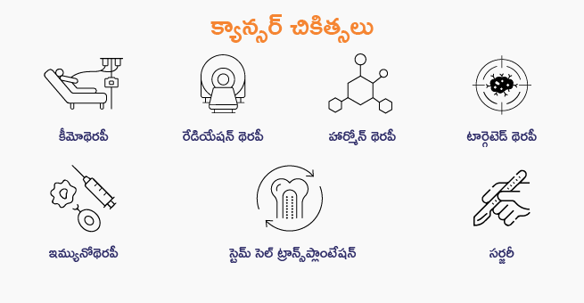 - హార్మోన్ థెరపీ: హార్మోన్ థెరపీ అనేది క్యాన్సర్ కణాల పెరుగుదలను మందగించడానికి లేదా ఆపడానికి హార్మోన్లను ఉపయోగించి చికిత్స చేయడం జరుగుతుంది. ఇది సాధారణంగా రొమ్ము మరియు ప్రోస్టేట్ క్యాన్సర్ వంటి హార్మోన్-సెన్సిటివ్ క్యాన్సర్లకు చికిత్స చేయడానికి ఉపయోగిస్తారు. హార్మోన్ థెరపీ ద్వారా శరీరంలోని కొన్ని హార్మోన్ల ఉత్పత్తిని నిరోధించడం లేదా సింథటిక్ హార్మోన్లను ప్రవేశపెట్టడం వంటివి జరుగుతుంది.
