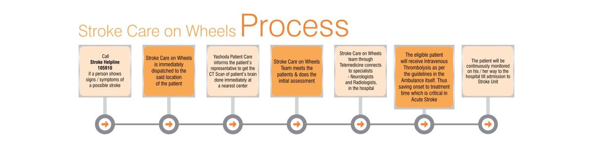 The Stroke Care on Wheels of Yashoda Hospitals is an ambulance solely focused on patients with stroke symptoms. With all the expertise, technology and medicine that a stroke victim requires, diagnosis can happen right away.