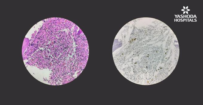 A 58-year-old male from Ethiopia, presented with symptomatic anaemia 20 months ago. A bone marrow aspiration and biopsy revealed 99 percent cellularity with myeloid predominant pan-myelosis and dysplastic changes suggestive of myeloproliferative neoplasm/myelodysplastic syndrome (MPN/MDS). The patient underwent 15 cycles of Azacitidine treatment and received multiple blood transfusions. Subsequently, he was referred to India for an allogeneic stem cell transplant.
