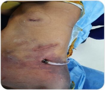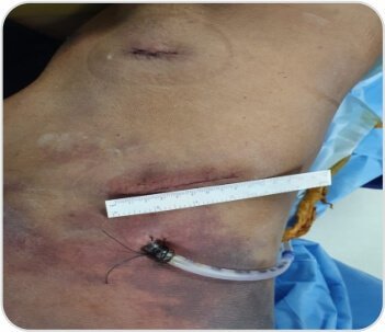 Intercostal hernia repaired with interrupted prolene sutures