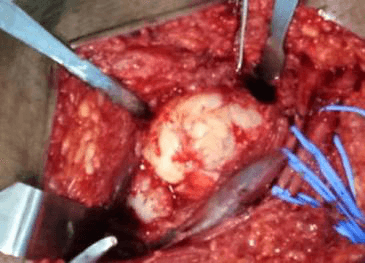 Osteochondroma in the antero-medial aspect of subtrochanteric region of the left femur with origin abutting the lesser trochanter with a large cartilaginous cap causing compression anterior displacement of femoral vessels near the bifurcation.
