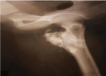 Osteochondroma is almost certainly the result of a localized disturbance of bone growth at an Epiphysis whereby a portion of the Epiphyseal Cartilage remains in the Periosteum of the Metaphyseal Segment of the bone and then Endochondral Ossification takes place in it. Usually in continuity with the Metaphyseal Cortex and as the Cartilage Cap proliferates, Endochondral Ossification continues, resulting in growth of the Osteochondroma and with continuous bone growth the Osteochondroma moves away from the Epiphysis and tends to become hooked, its tip pointing away from the Epiphysis.