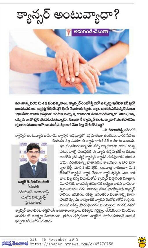Dr. K. Kiran Kumar is a Consultant Radiation Oncologist at Yashoda Hospitals, Somajiguda, with over 18 years of experience.
