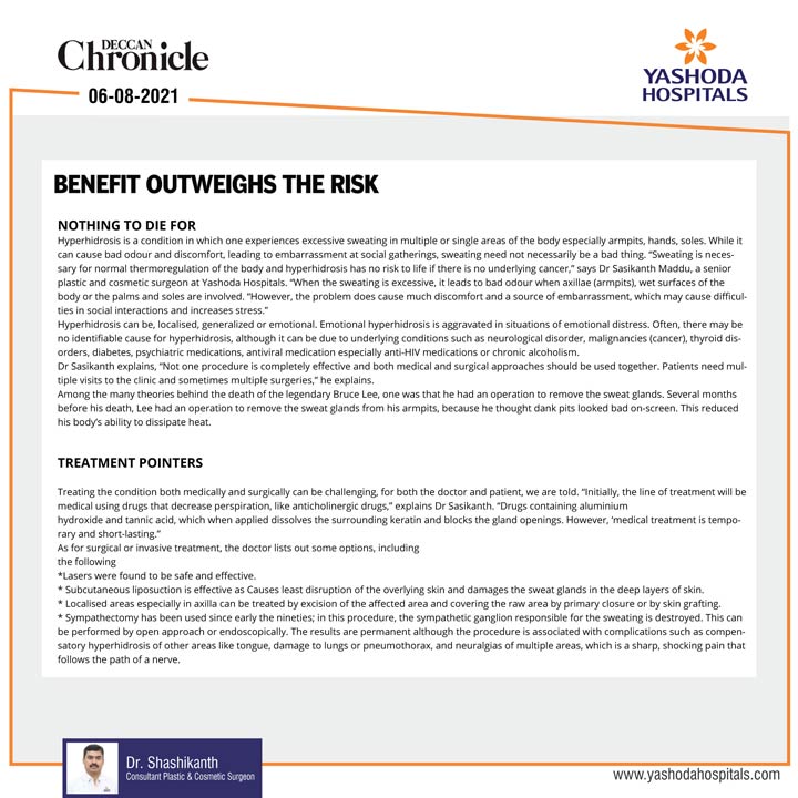 Patients frequently visit Dr. Shashikanth for Plastic Surgery. To see more reasons visit the doctor’s profile on Yashoda Hospitals.