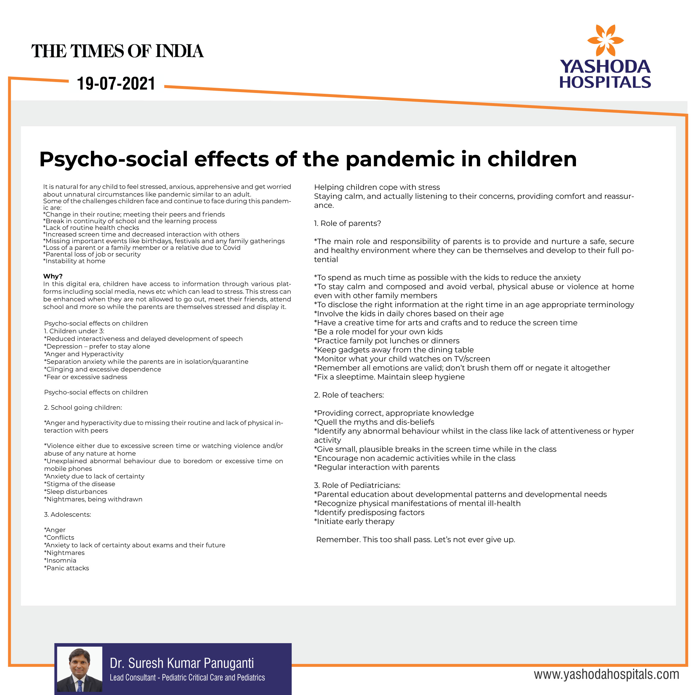 Dr. Suresh Kumar Panuganti is a Lead Consultant-Pediatric Critical Care and Pediatrics at Yashoda Hospitals, Somajiguda, with over 19 years of experience. He has immense knowledge and experience in treating all types of paediatric diseases with the utmost proficiency.