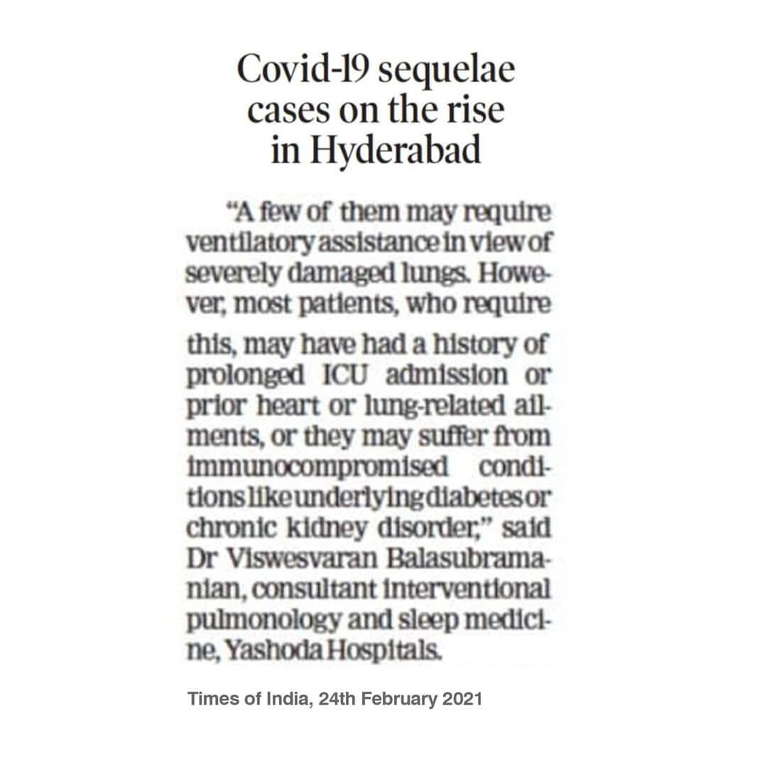 • 2019-Present: Consultant Interventional Pulmonology and Sleep Medicine, Yashoda Hospitals, Malakpet