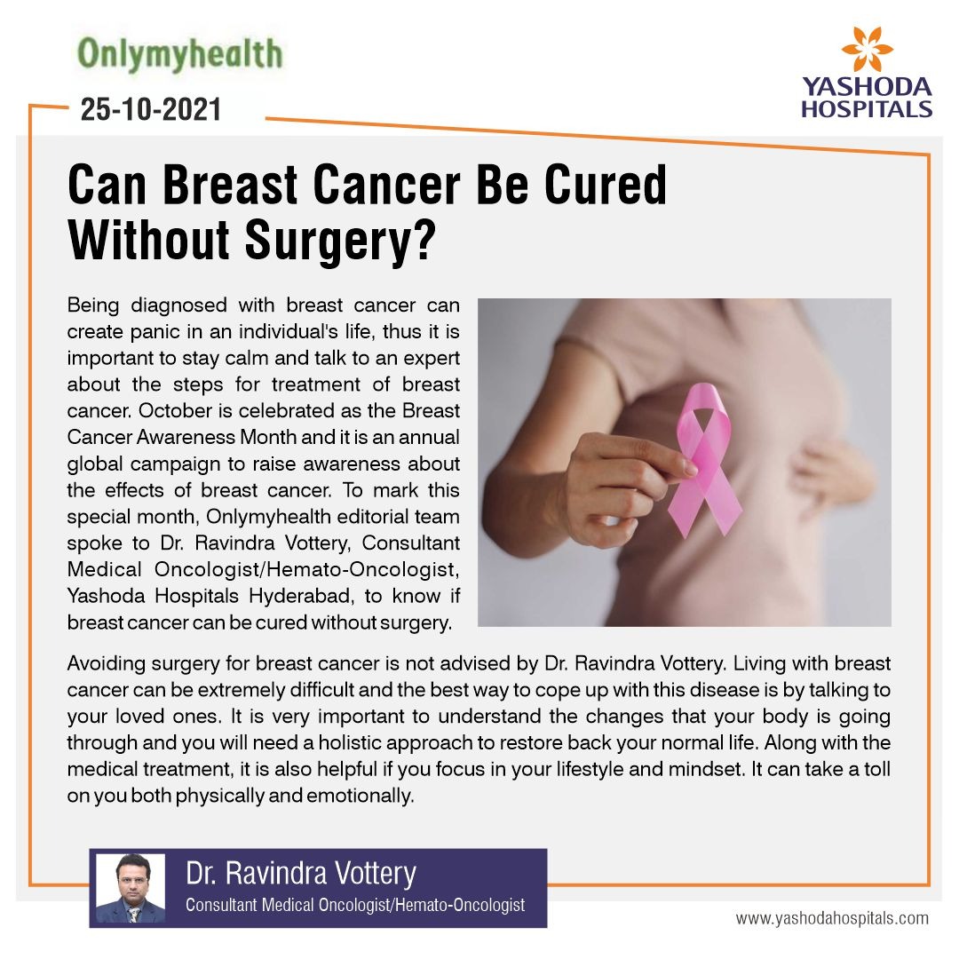Can Breast Cancer Be Cured Without Surgery? by madan | Jul 10, 2024 | | 0 20 Whatsapp facebook Twitter Pinterest LinkedIn Tumblr Reddit << Previous Articleecmo-treatment-for-swine-flu-Dr-M-Gangadhar-Pulmonologist Next Article >>The-Coronavirus-Myths-and-facts