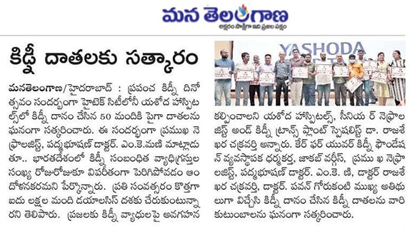 Yashoda Hospitals Facilitated 50+ Kidney Donors at Hitec City