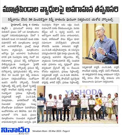 Yashoda Hospitals facilitated over 50 kidney donors at the Hitec City unit on the occasion of the up-coming World Kidney Day on March 9, 2023.
