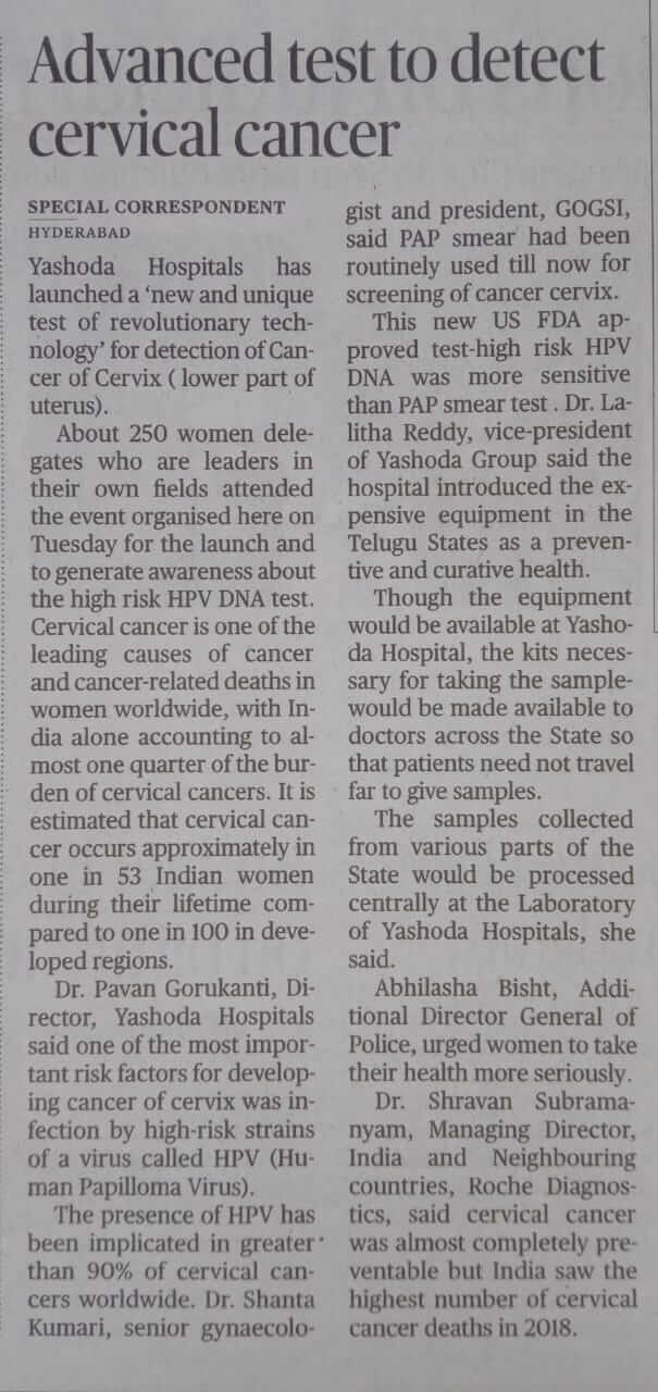 Yashoda Hospitals launched advanced test for cervical cancer detection