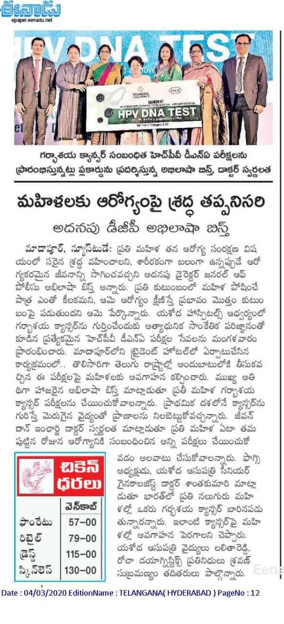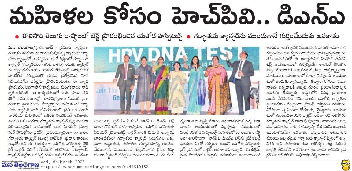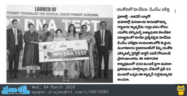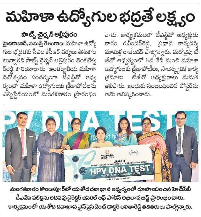 Yashoda Hospitals launched HPV DNA test – The revolutionary technology in the detection and prevention of cervical cancer in women. HPV TEST is the only test approved by the USFDA and is more predictive than PAP SMEAR TEST in diagnosis of cervical cancer.