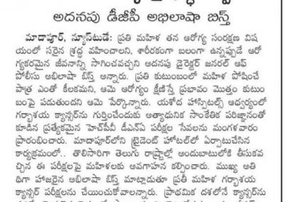 Dr. Pavan Gorukanti, Director, Yashoda Hospitals said one of the most important risk factors for developing cancer of cervix was infection by high-risk strains of a virus called HPV (Human Papilloma Virus). The presence of HPV has been implicated in greater than 90% of cervical cancers worldwide.