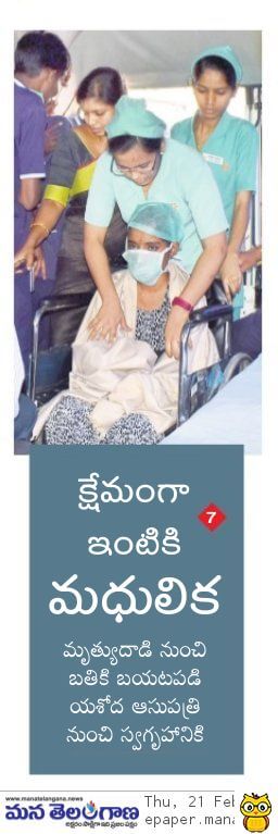 - http://manatelangana.news/madhulika-discharge-from-yashoda-hospital-in-telangana/