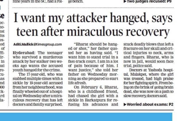 - https://m.dailyhunt.in/news/india/english/thehansindia-epaper-hans/madhulika+attacked+by+stalker+discharged+from+hospital+after+complete+recovery-newsid-109257775