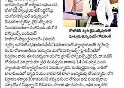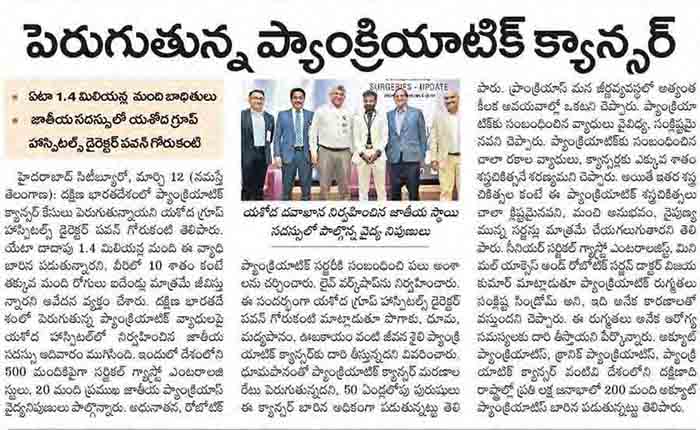 The conference was attended by more than 500 practicing surgeons. There were around 20 eminent national faculty members in the field of pancreas from across the country. This was the first of its kind conference in Hyderabad, where the complete spectrum of pancreatic diseases were discussed and all types of pancreatic surgeries were performed live using the most advanced technology. The conference was inaugurated by Dr. G. S. Rao, Managing Director, and Dr. Pavan Gorukanti, Director, Yashoda Hospitals.