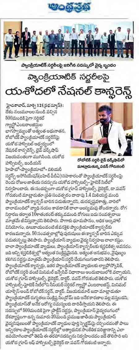 Yashoda Hospitals successfully conducted the National Conference and Live Workshop on the most advanced and robotic “pancreatic surgeries” with the participation of 500+ surgical gastroenterologists from all over India.