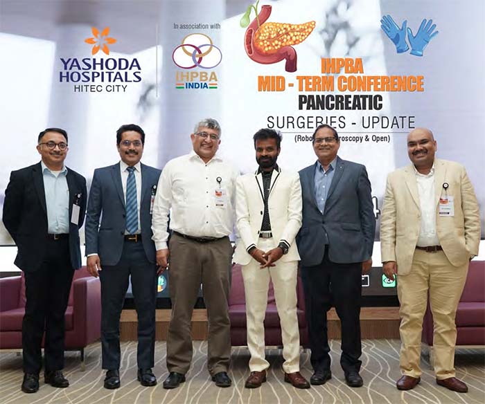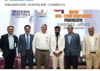 Yashoda Hospitals’ senior surgical gastroenterologist, minimal access and robotic surgeon, Dr. Vijaykumar Bada, is well known for performing advanced GI surgeries for cancer and complex pancreatic surgeries by laparoscopic and advanced robotic techniques regularly. Yashoda Hospital in Hitech City has the latest generation of robotic systems. There are many young surgeons who are interested in performing pancreatic surgeries and in understanding the various complexities involved in major pancreatic surgeries. Lack of exposure, expertise, technology, and knowledge of pancreatic diseases and surgeries makes many surgeons shy away from undertaking pancreatic surgeries. In this regard, the Department of Surgical Gastroenterology and Robotic Sciences at Yashoda Hospital in Hitech City, in association with the Indian Hepato-Pancreato-Biliary Surgeons Association (IHPBA), organized a national conference on pancreatic surgeries—an update on March 11 and 12, 2023. IHPBA is the national association of all surgeons who specialize in liver, pancreas, and biliary surgery in India.