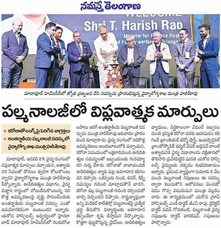 Dr. G. S. Rao, Managing Director of Yashoda Group Hospitals, revealed the ‘Innovative Practitioner’s Introduction to Bronchial Thermoplasty and Interventional Bronchoscopic Thermal Vapor Absolution (TVA) for the Treatment of Many Lung Diseases, from Chronic Plague Asthma to the Current Coronavirus.’ Yashoda Hospitals hold the credit for treating more patients in the country through the Bronchial Thermoplasty procedure.