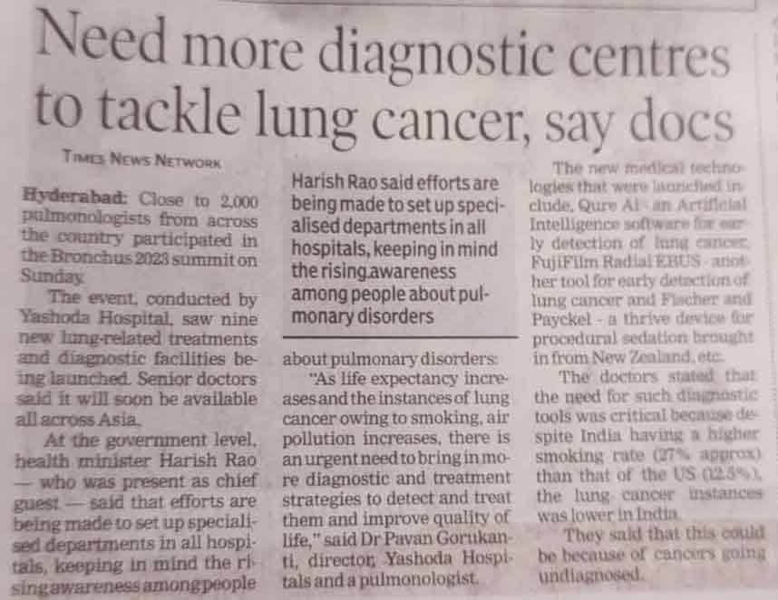 - https://timesofindia.indiatimes.com/city/hyderabad/need-more-diagnostic-centres-to-tackle-lung-cancer-say-doctors/articleshow/97427964.cms