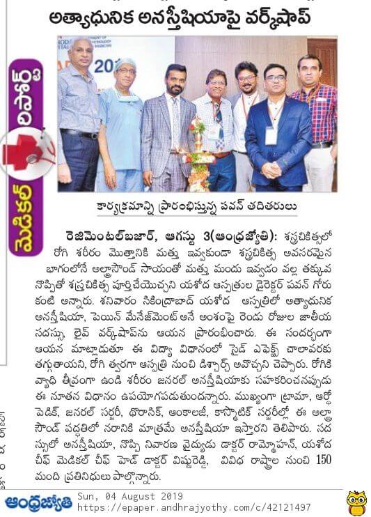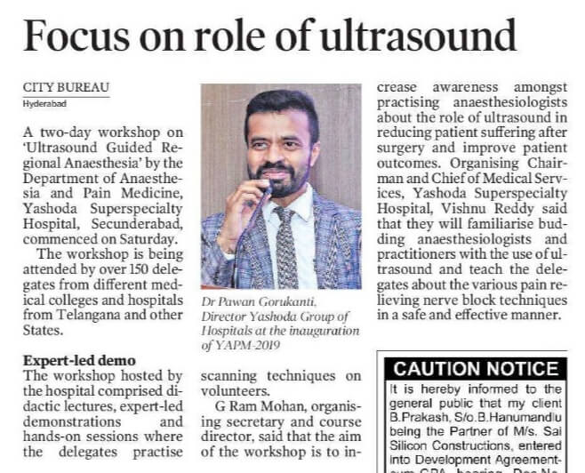 Yashoda Hospitals, Secunderabad, conducted a 2-day workshop on ultrasound-guided regional anaesthesia