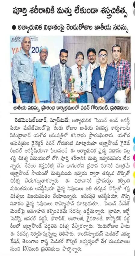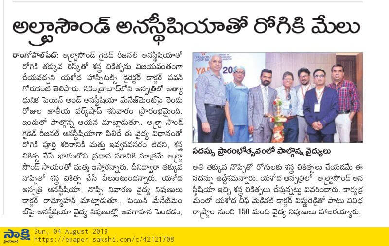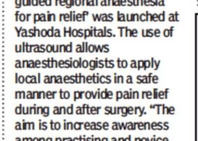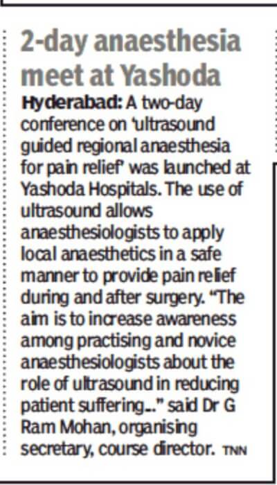 Organising Chairman and Chief of Medical Services, Yashoda Hospitals, Vishnu Reddy said that they will familiarise budding anaesthesiologists and practitioners with the use of ultrasound and teach the delegates about the various pain relieving nerve block techniques in a safe and effective manner.