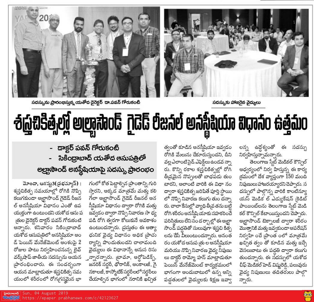 Yashoda Hospitals > News > Yashoda Hospitals, Secunderabad, conducted a 2-day workshop on ultrasound-guided regional anaesthesia