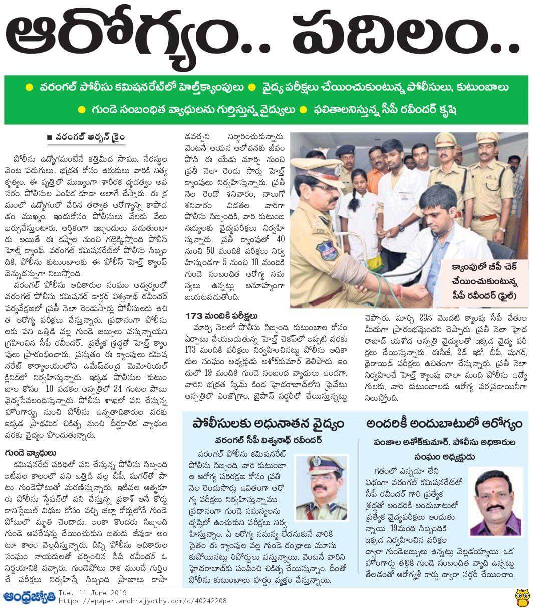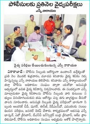 On 20 July 2019, Yashoda Hospitals conducted a preventive health checkup camp for the police department in Vikarabad and Warangal. The camp was a huge success with a total of 85 Police Personnel and their family attending for the health check. The attendees were tested for general diseases such as hypertension, diabetes, heart diseases and bone-related problems. Dr. Karthik, cardiologist, and Dr. Vamshi Krishna, orthopedist along with the supporting staff were available for tests and counselling.