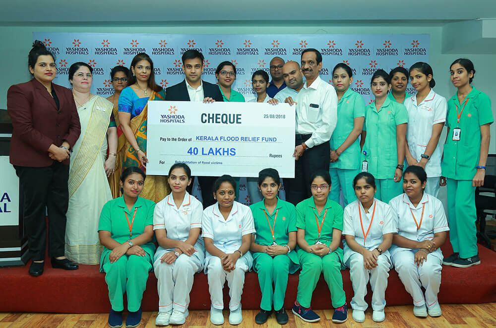 In a small effort to help & support those affected by the natural calamity across the state, the management and the staff of Yashoda Group of Hospitals, Hyderabad donated a sum of 40 Lakh on the eve of Onam. The donation was made towards “KERALA FLOOD RELIEF FUND” through ‘Malayala Manorama Charitable Trust’, Kottayam, Kerala.