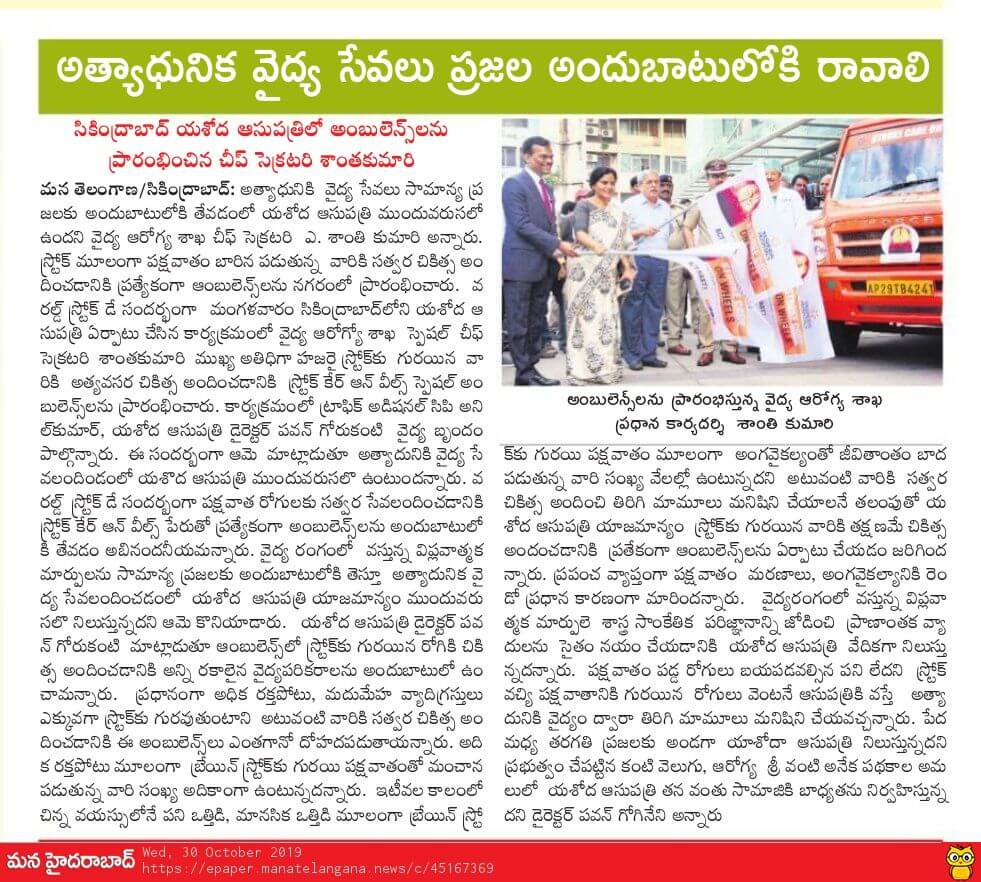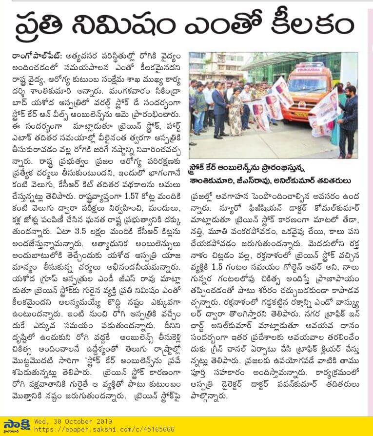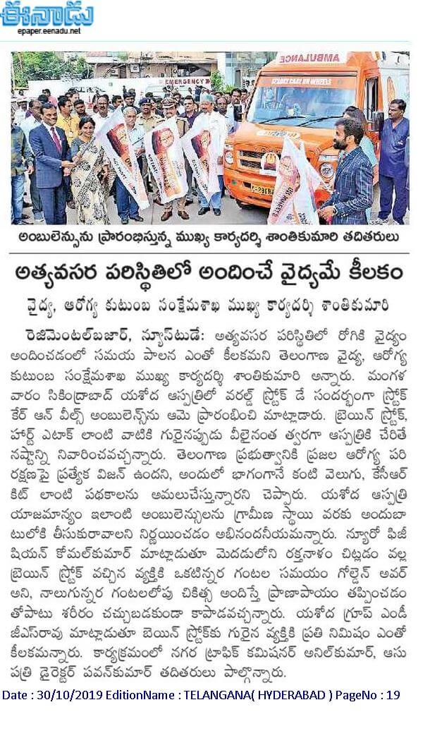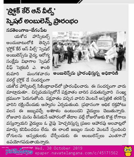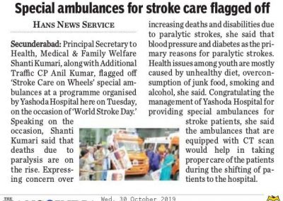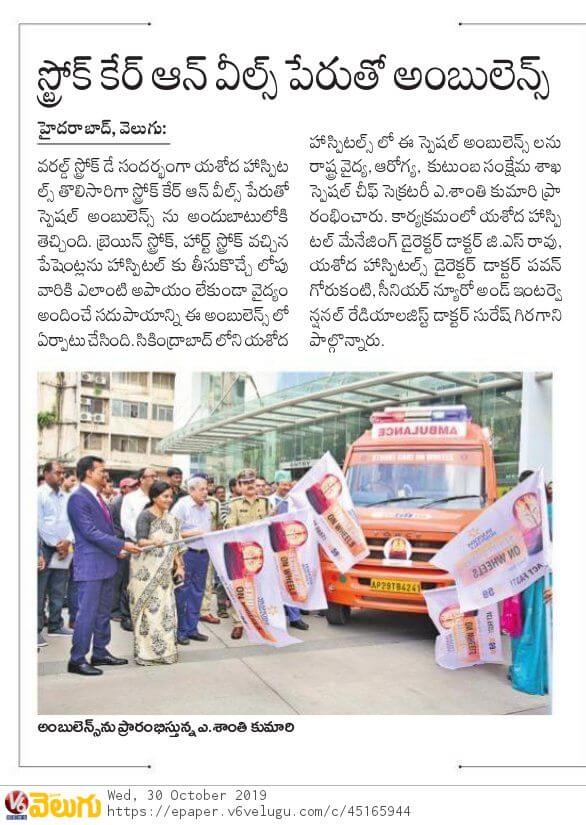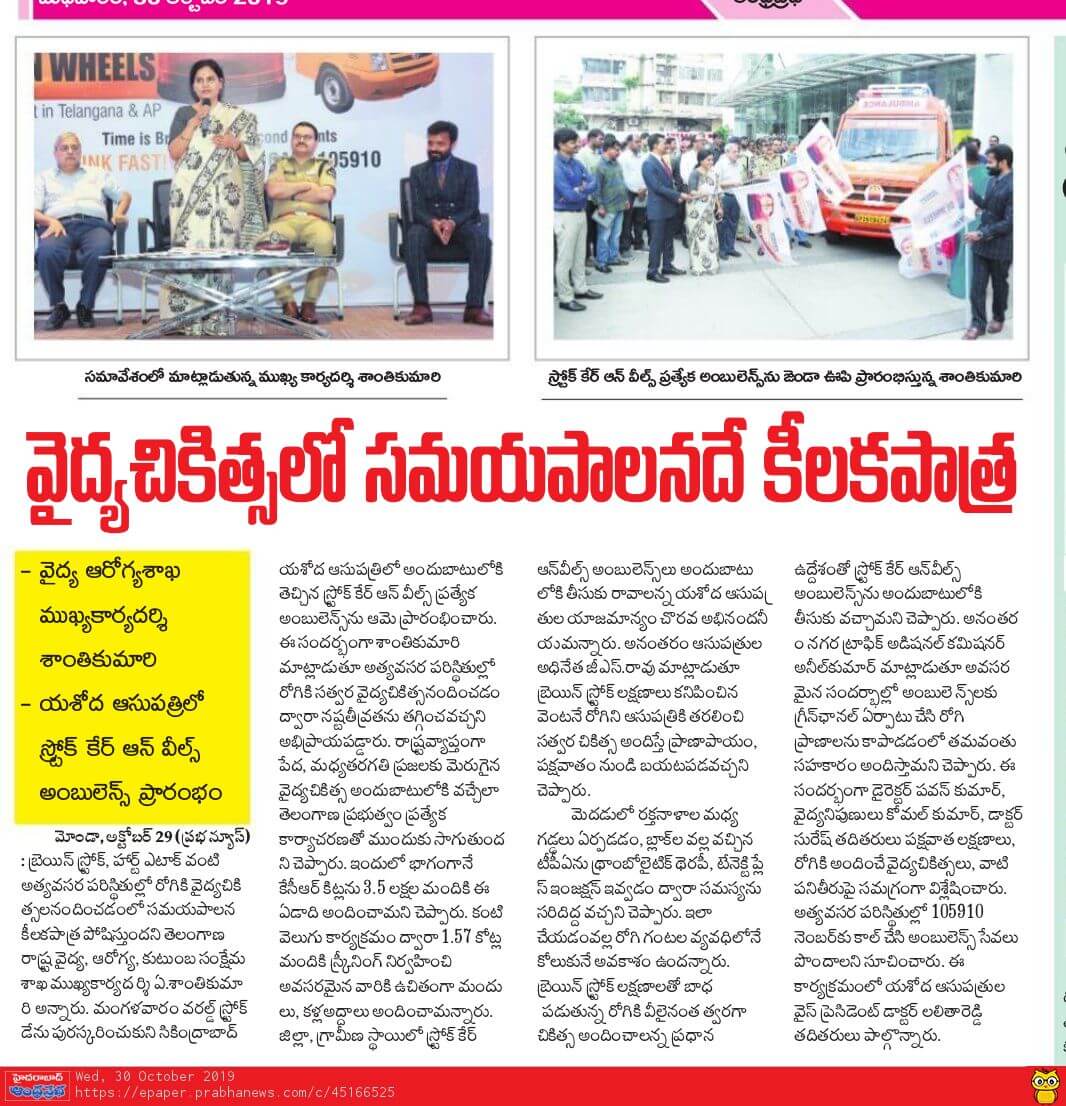 Yashoda Hospitals > News > Yashoda Hospitals Launches Stroke Care on Wheels on the Occasion of World Stroke Day