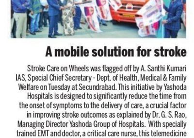 “Stroke Care on Wheels’ initiative is aimed at saving lives of stroke victims by extending emergency medical services at the earliest. It would reduce the time taken to deliver care, a crucial factor to save lives,” says MD, Yashoda Hospitals, Dr GS Rao.