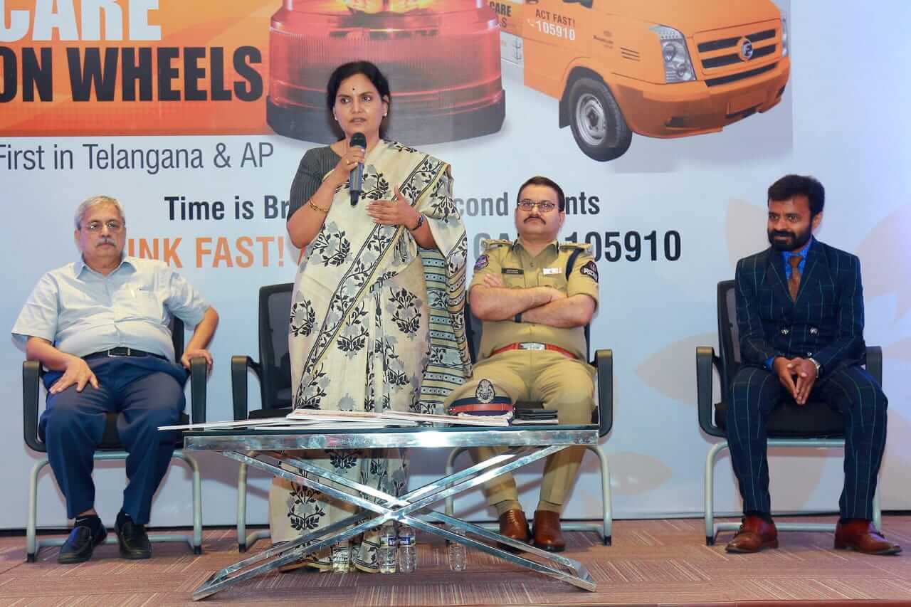 The honorable guests for the occasion were Smt. Shanti Kumari IAS, Special Cheif Secretary – Department of Health, Medical and Family Welfare – Government of Telangana and Anil Kumar, Additional Commissioner of Traffic, Telangana who flagged of STROKE Care On Wheels.