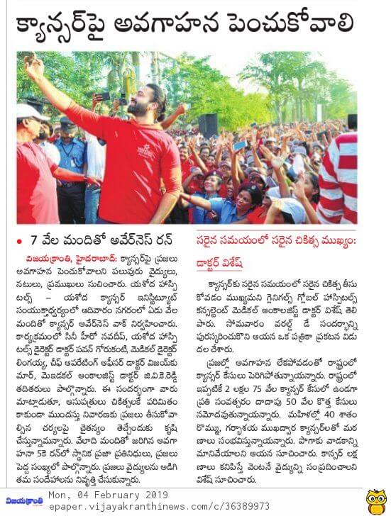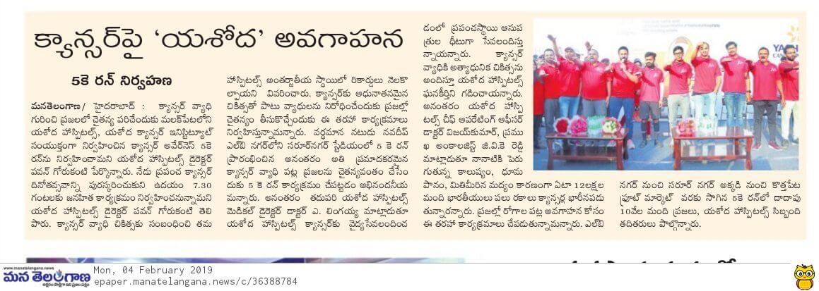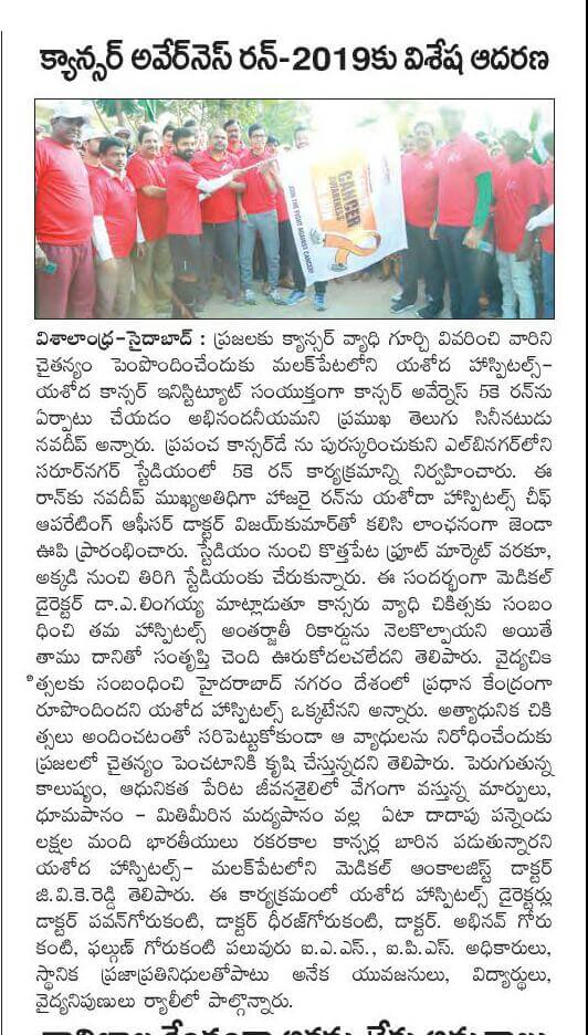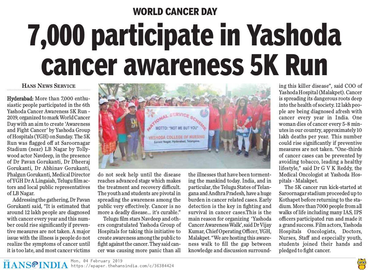 - https://www.thehansindia.com/posts/index/Telangana/2019-02-04/7000-participate-in-Yashoda-cancer-awareness-5K-Run-/487678