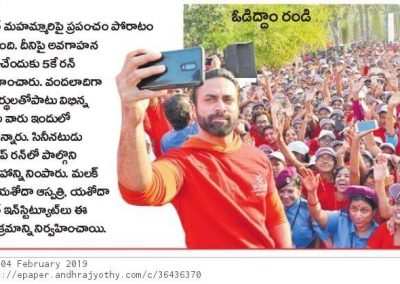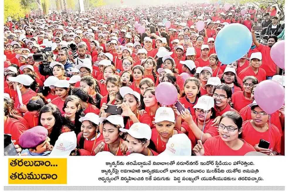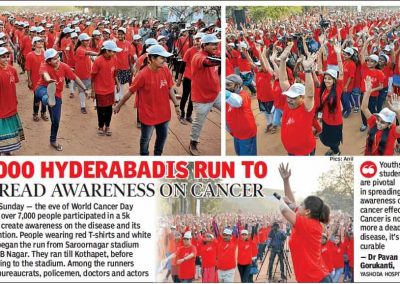 More than 7,000 health enthusiasts turned-up at Saroornagar indoor stadium on Sunday morning to take part in the run. The event was a grand success with youth, educational institutions, public representatives, doctors, nurses, health care workers, members of voluntary organizations coming together to pledge against cancer. All the youngsters took it on Facebook and Instagram to spread the word with “I #Run4CancerWidYH” selfies & video posts.