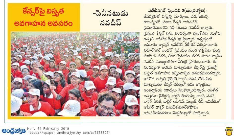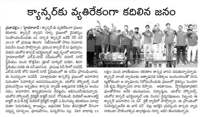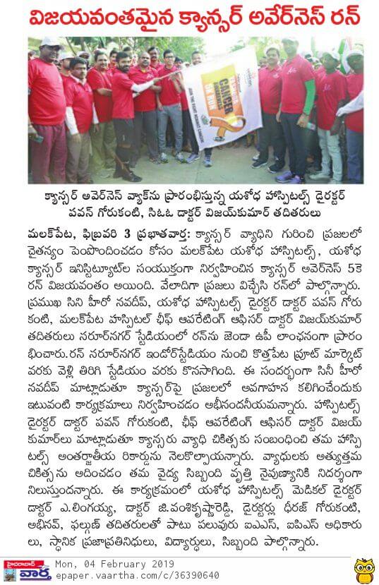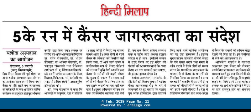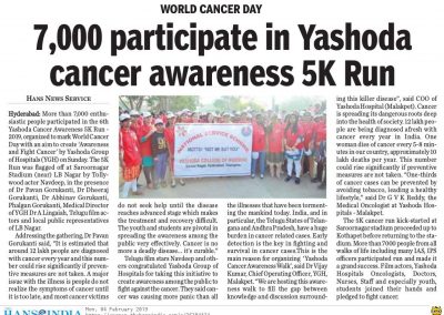 - https://www.thehansindia.com/posts/index/Telangana/2019-02-04/7000-participate-in-Yashoda-cancer-awareness-5K-Run-/487678