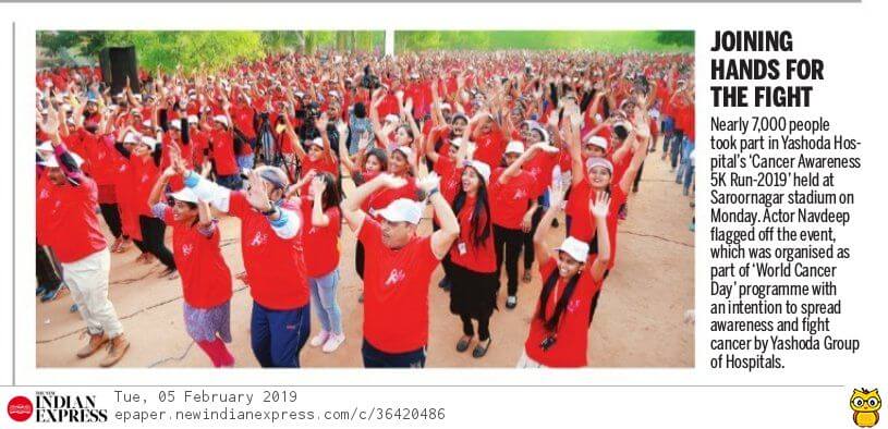 Yashoda Hospitals > News > Yashoda Hospitals marks World Cancer Day 2019 with the 6th edition of Cancer 5K run