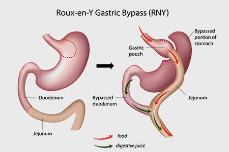 A major portion of stomach is removed as in gastric sleeve surgery and the remaining pouch is directly connects to the final segment of the small intestine. This way the food passes through the small portion of the stomach and passes directly into the final segment of small intestine and into the colon. However, before the food enters colon, it gets mixed with the bile and the pancreatic juices in the small intestine.