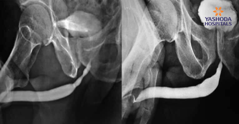 Figure 4: (a)(b) Pre-Post-BEES-HAUS procedure Urethrogram