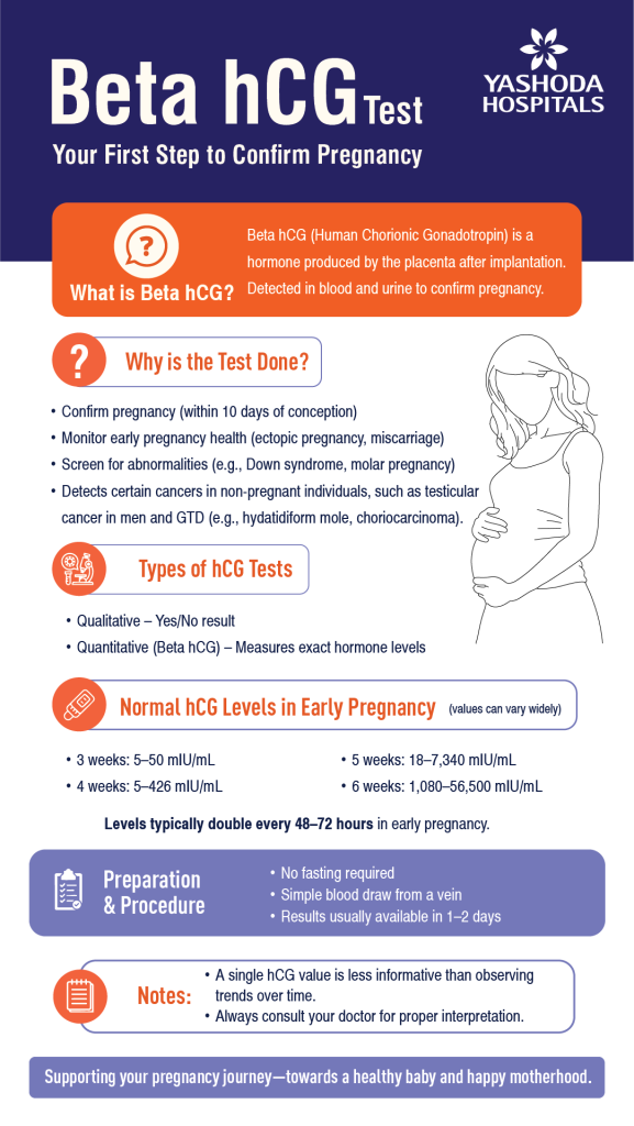 The Beta hCG test is primarily used for confirming pregnancy. It helps determine the approximate age of the fetus. It can diagnose a potential miscarriage and screen for Down’s syndrome.