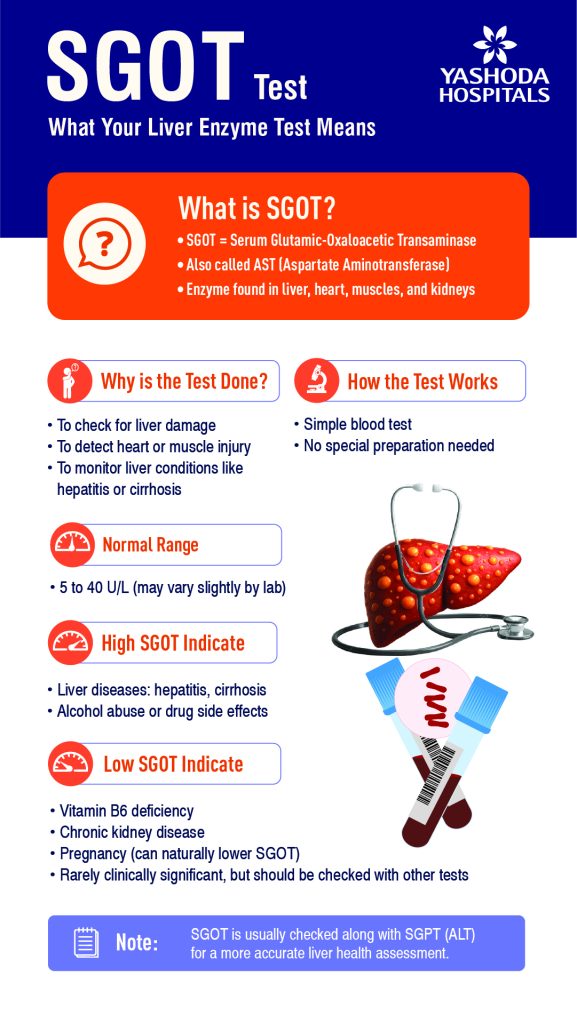 The SGOT blood test determines the level of SGOT in your bloodstream. It is used to diagnose liver diseases and liver damage. When the liver cells are damaged due to any illness or other medical condition, SGOT leaks into the blood. If your test results show a higher level of SGOT in the blood, your doctor will most likely diagnose you with having a liver ailment.